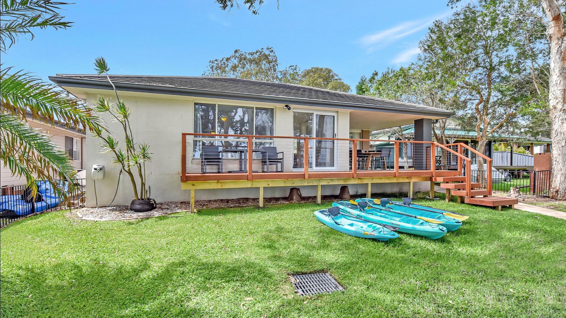 Located in a quiet yet convenient neighbourhood, the home places you just minutes from local shops, cozy cafés, scenic walking paths, and the stunning Lake Munmorah shoreline. The property is also within a few minutes’ walk of the local club, tennis courts and basketball courts, as well as a public jetty. Whether you’re exploring the natural beauty of the region, enjoying water activities, or simply soaking up the tranquility, this home serves as the perfect base. Ideal for families, groups of friends, or anyone seeking a serene escape with all the comforts of home. Two adult and two children’s kayaks as well as life jackets are also provided for convenience so you do not miss the opportunity to explore the beautiful lake.