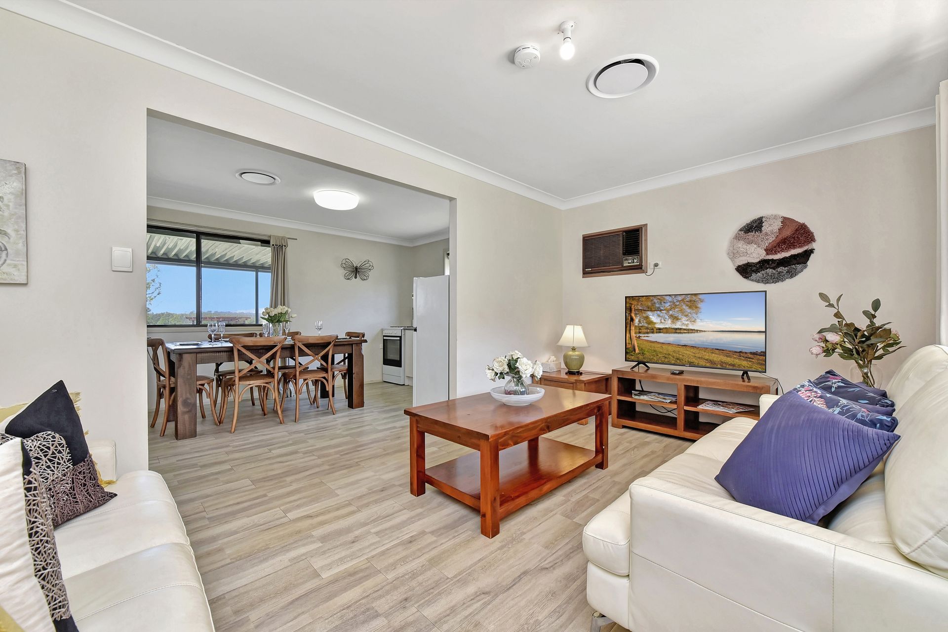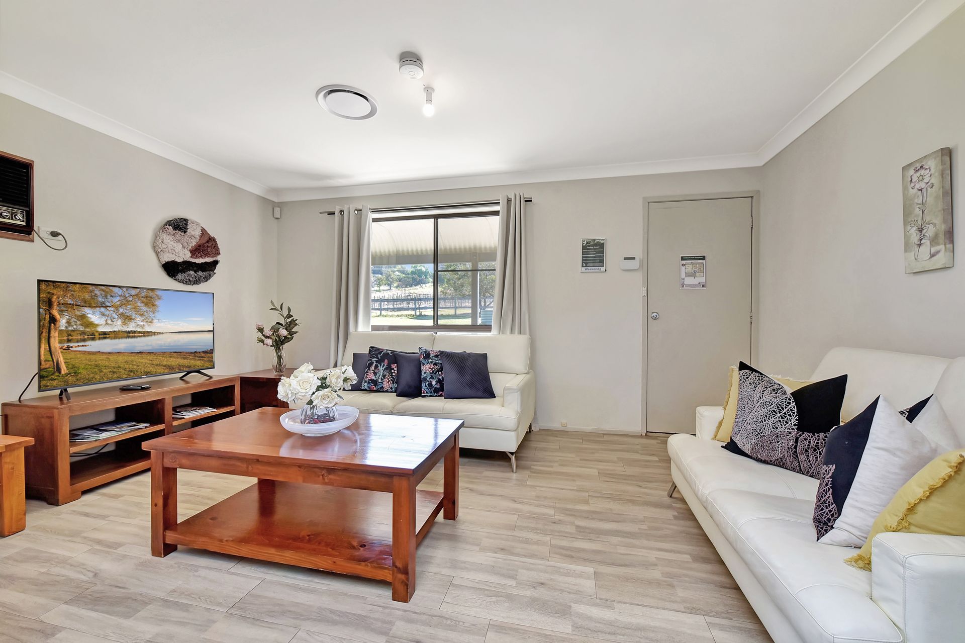 Extra features fully ducted air conditioning, a 50" smart tv, a coffee machine, and an outdoor fire pit!