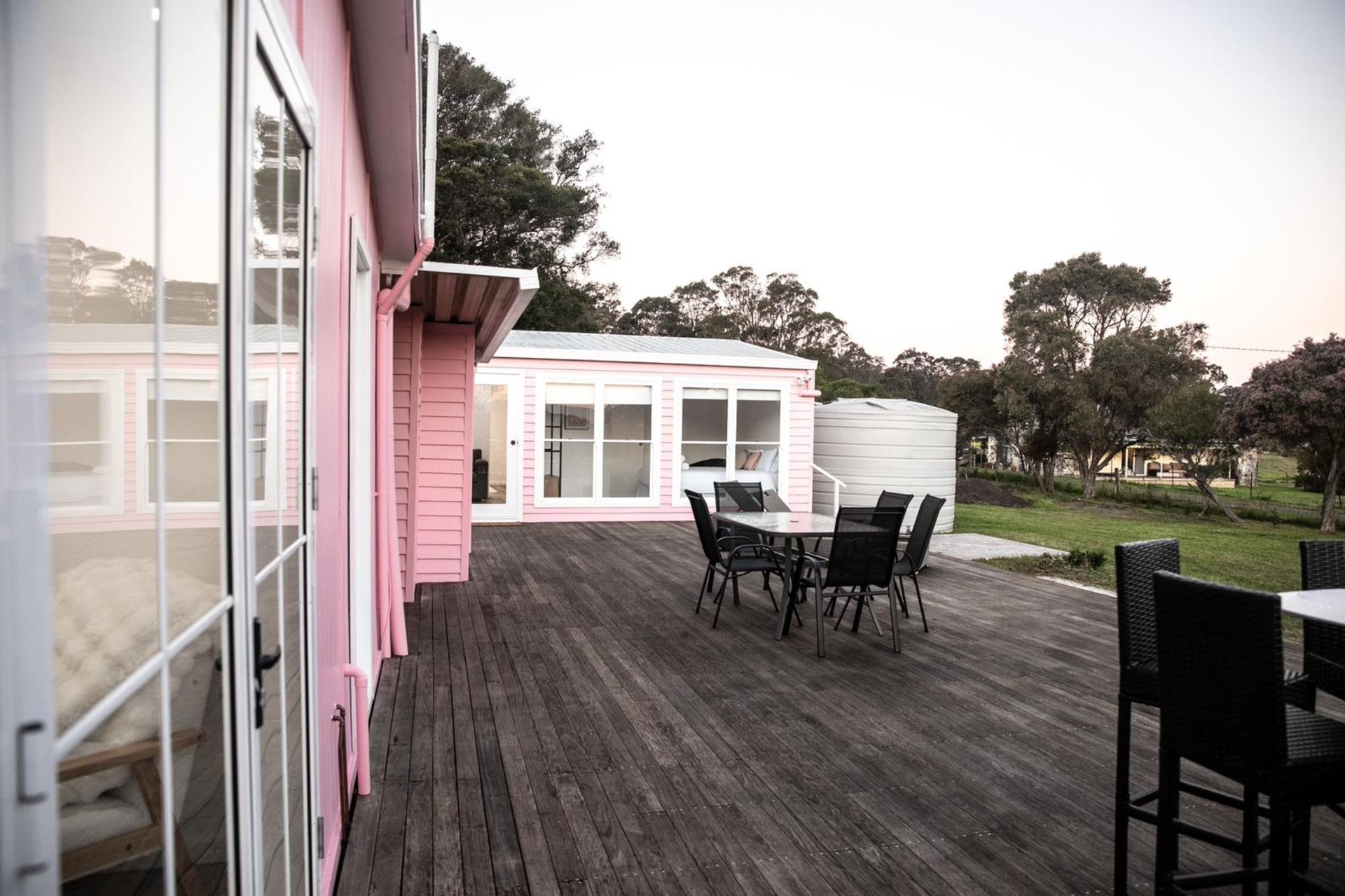 Spacious Accommodation: Made up of 2 dwellings. Dwelling 1 - 3 bedroom house, 2 bathrooms, kitchen, living areas. Dwelling 2- 3 bedroom cabin with a lounge area, no bathroom in cabin. Spread out and relax in our generously sized bedrooms and multiple living areas. The house comfortably sleeps up to 14 guests, making it ideal for large gatherings or intimate get-togethers.