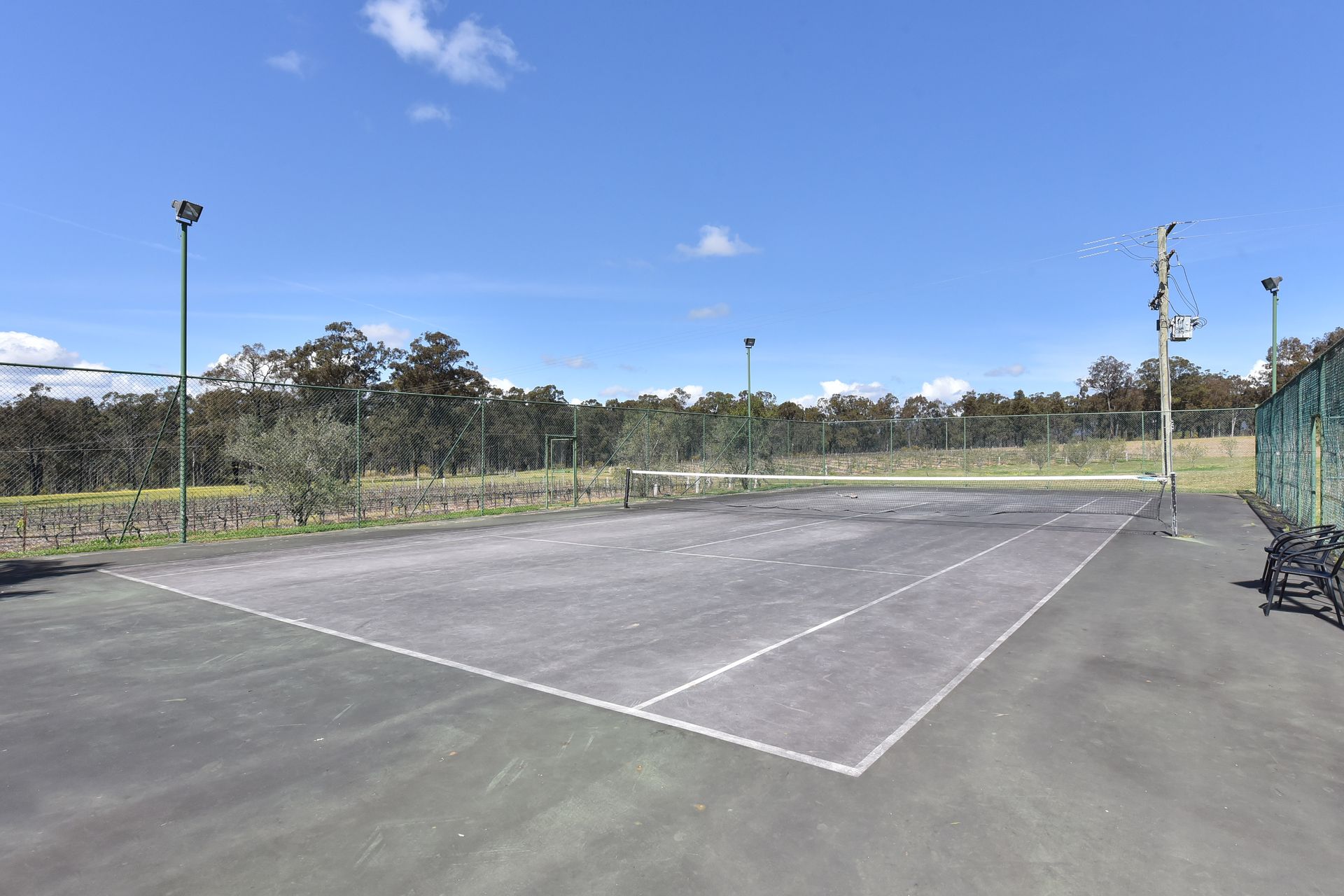 This private retreat is designed for entertaining there are two fabulous undercover dining areas; one completely enclosed with screens and louvre windows, and the other a sun-drenched deck with views over the vineyard. Catering for your guests will be a pleasure in the fully equipped contemporary kitchen with a Nespresso coffee machine, large chefs' oven, gas cooktop, dishwasher, and all the modern conveniences. On those chilly evenings relax in the open-plan lounge room and sit back with friends and enjoy a bottle of wine beside the roaring combustion log fire. Enjoy exclusive use of the sparkling private pool in summer and equipped with reverse-cycle air conditioning this makes the Retreat a perfect choice all year round. If you are feeling energetic enjoy a game of tennis on the Retreats' private court or take a stroll through the grounds and visit Peter Drayton's cellar door for a memorable wine tasting.