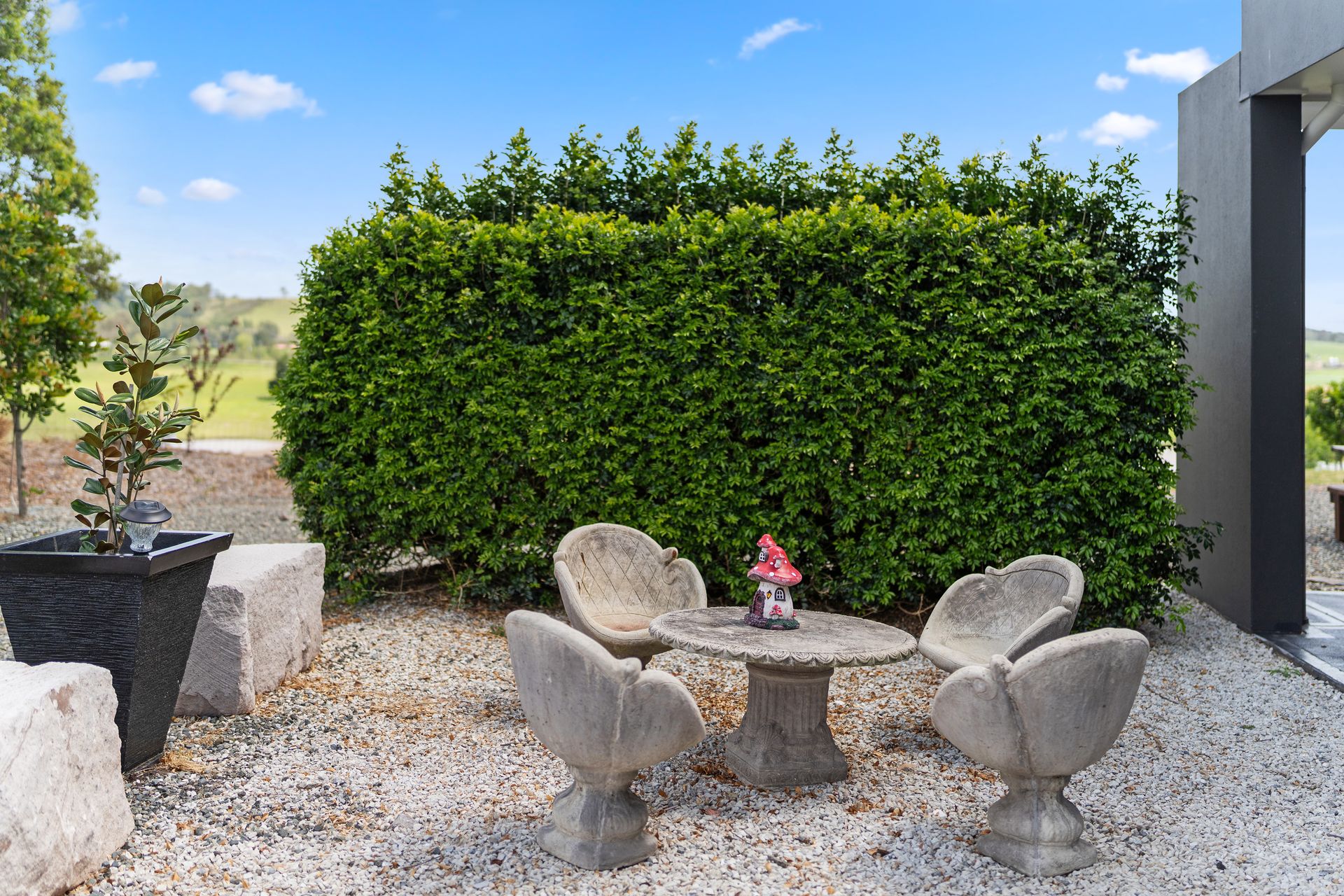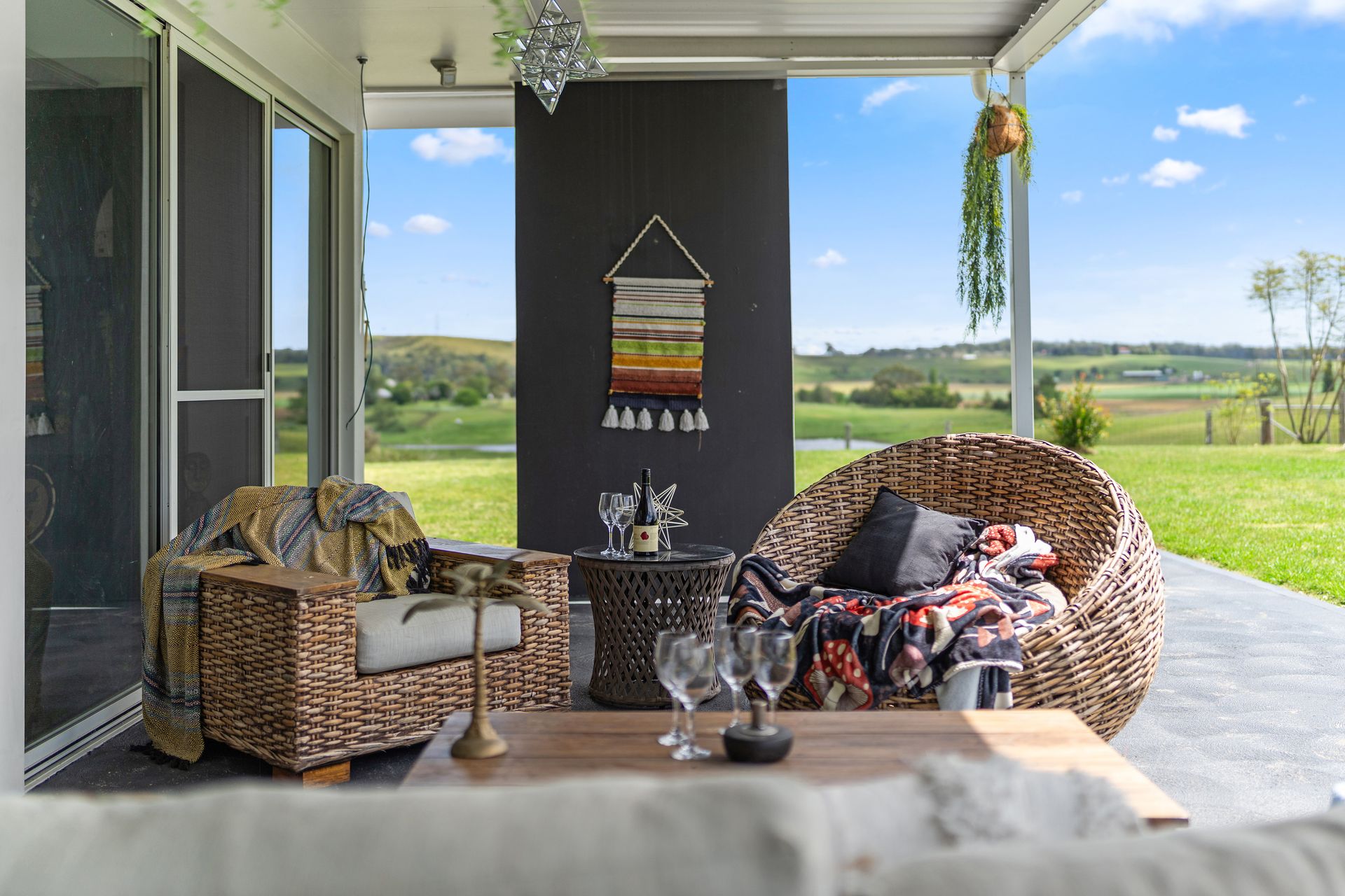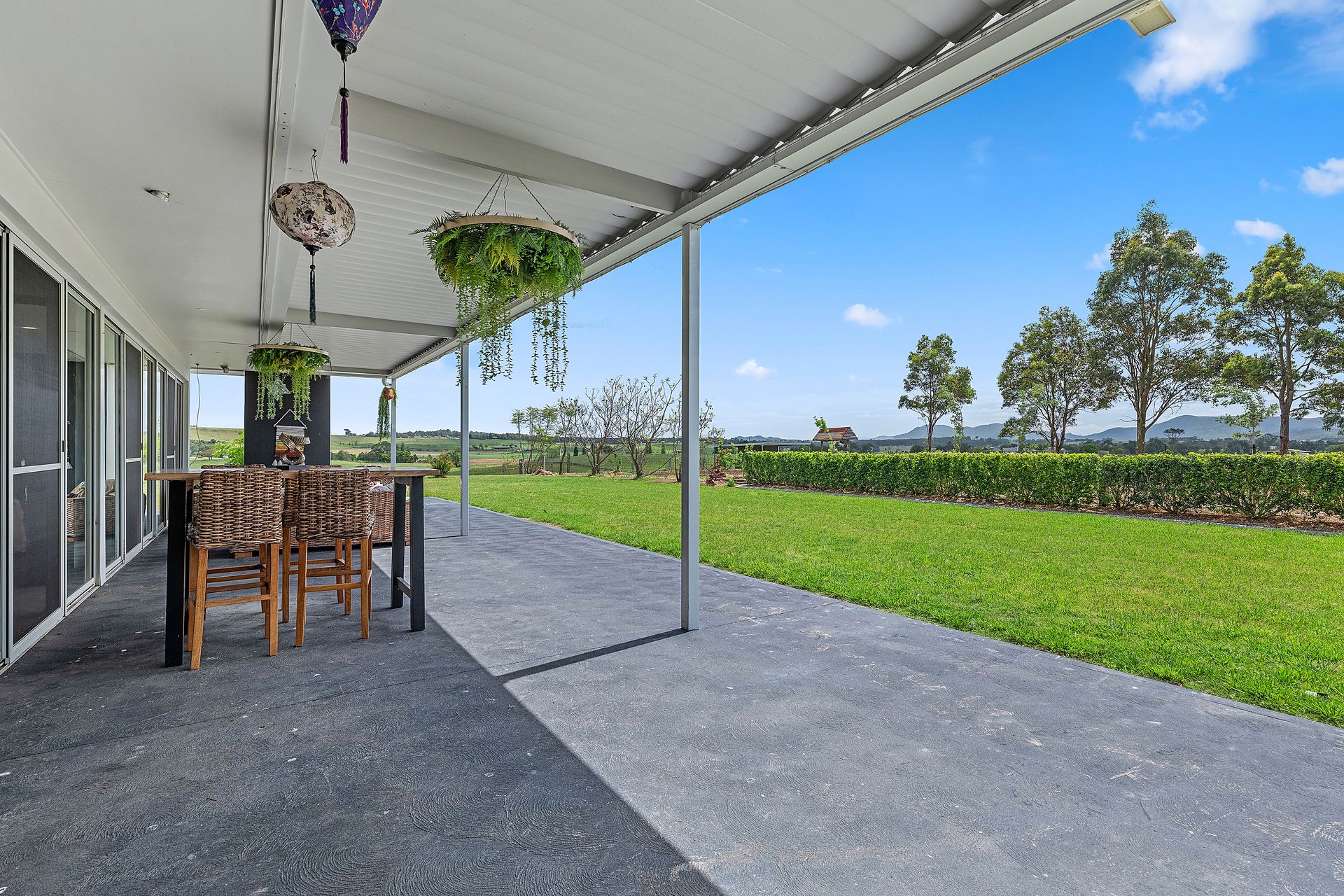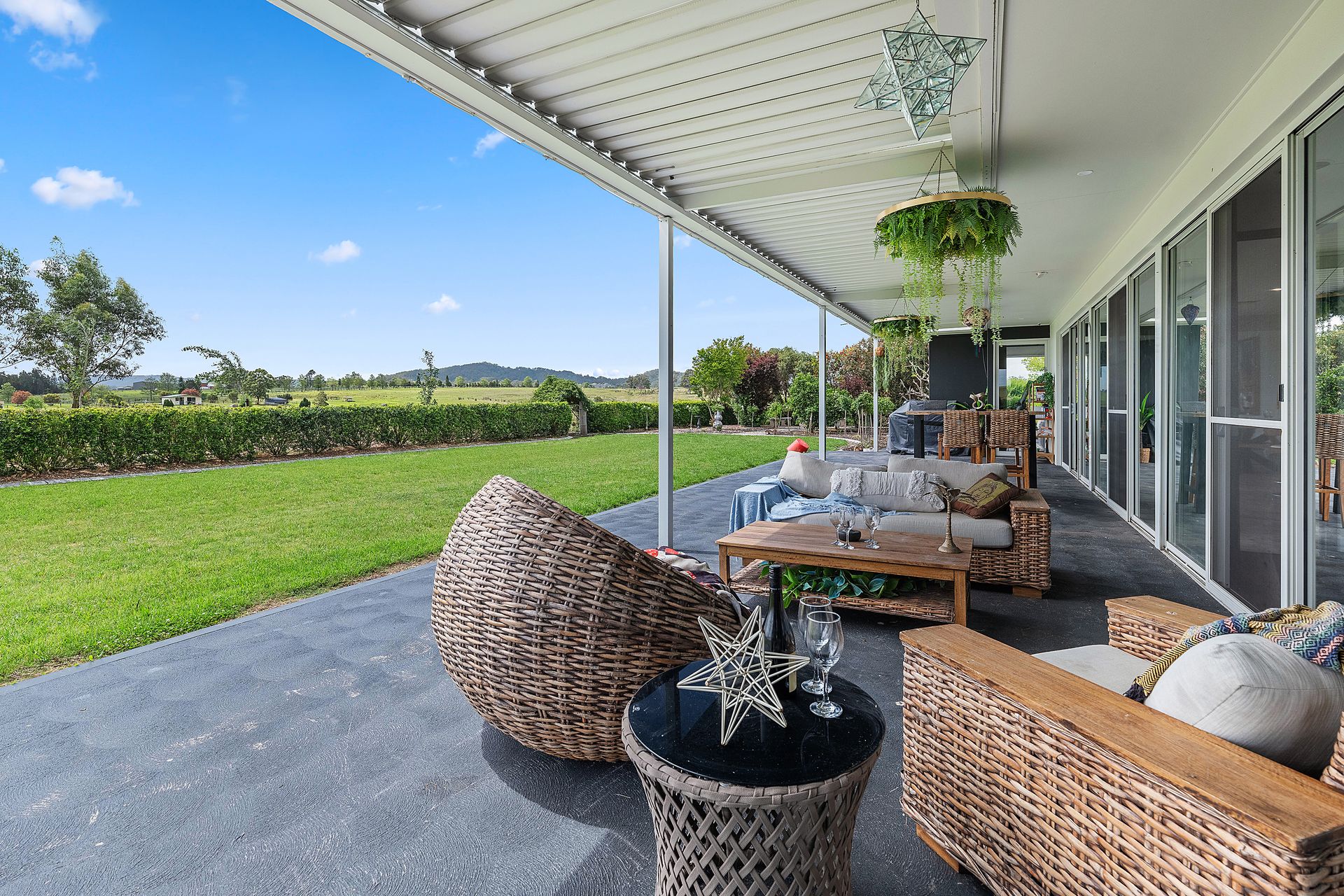Koru Escape is a stunning 5-bedroom countryside retreat offering the perfect blend of privacy, comfort, and natural beauty. Set on a working cattle farm, the home overlooks rolling farmland that stretches down to the Hunter River, providing a peaceful rural backdrop for your getaway. Architecturally designed around a central swimming pool, the house features spacious living areas and private verandas that invite you to unwind and reconnect.