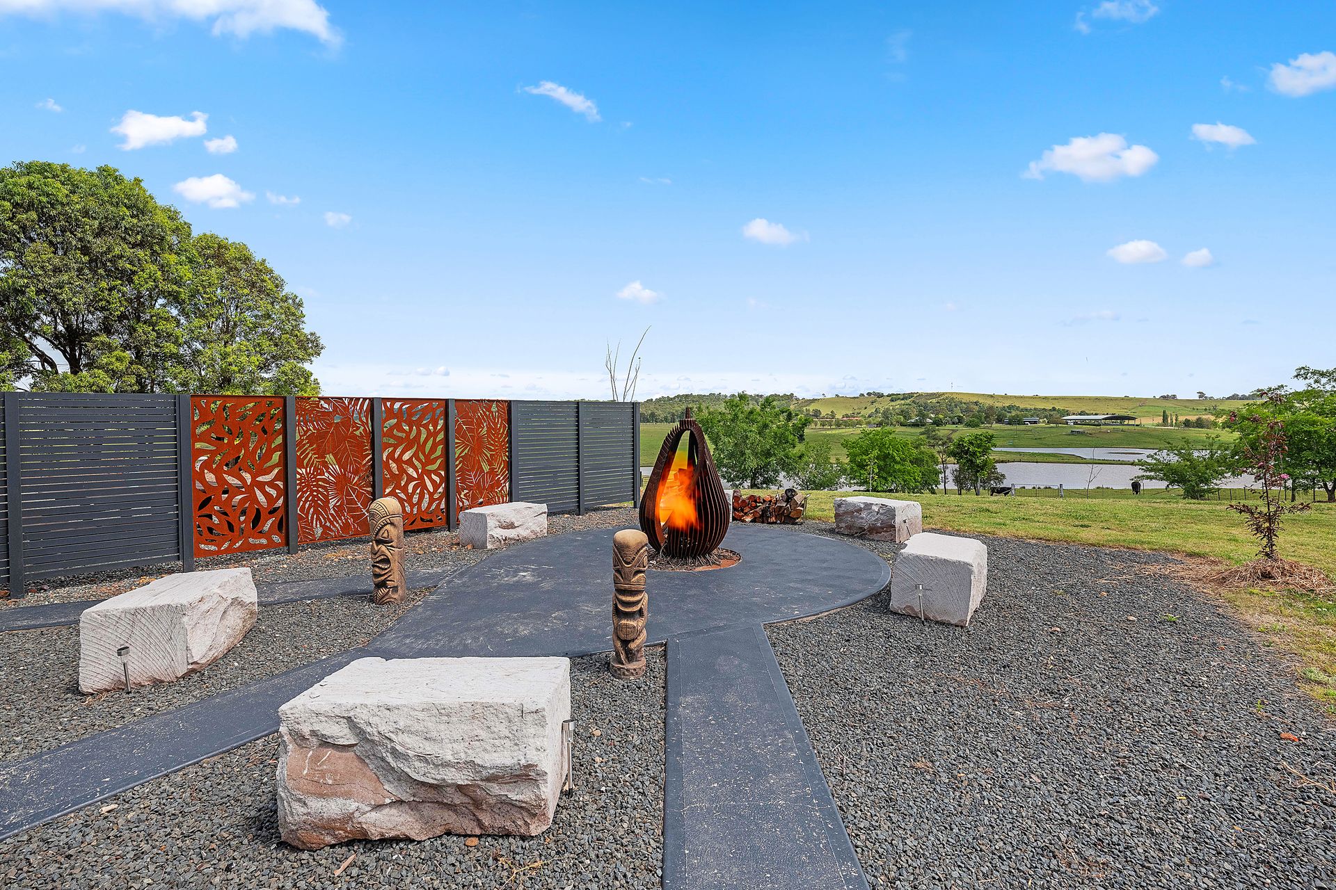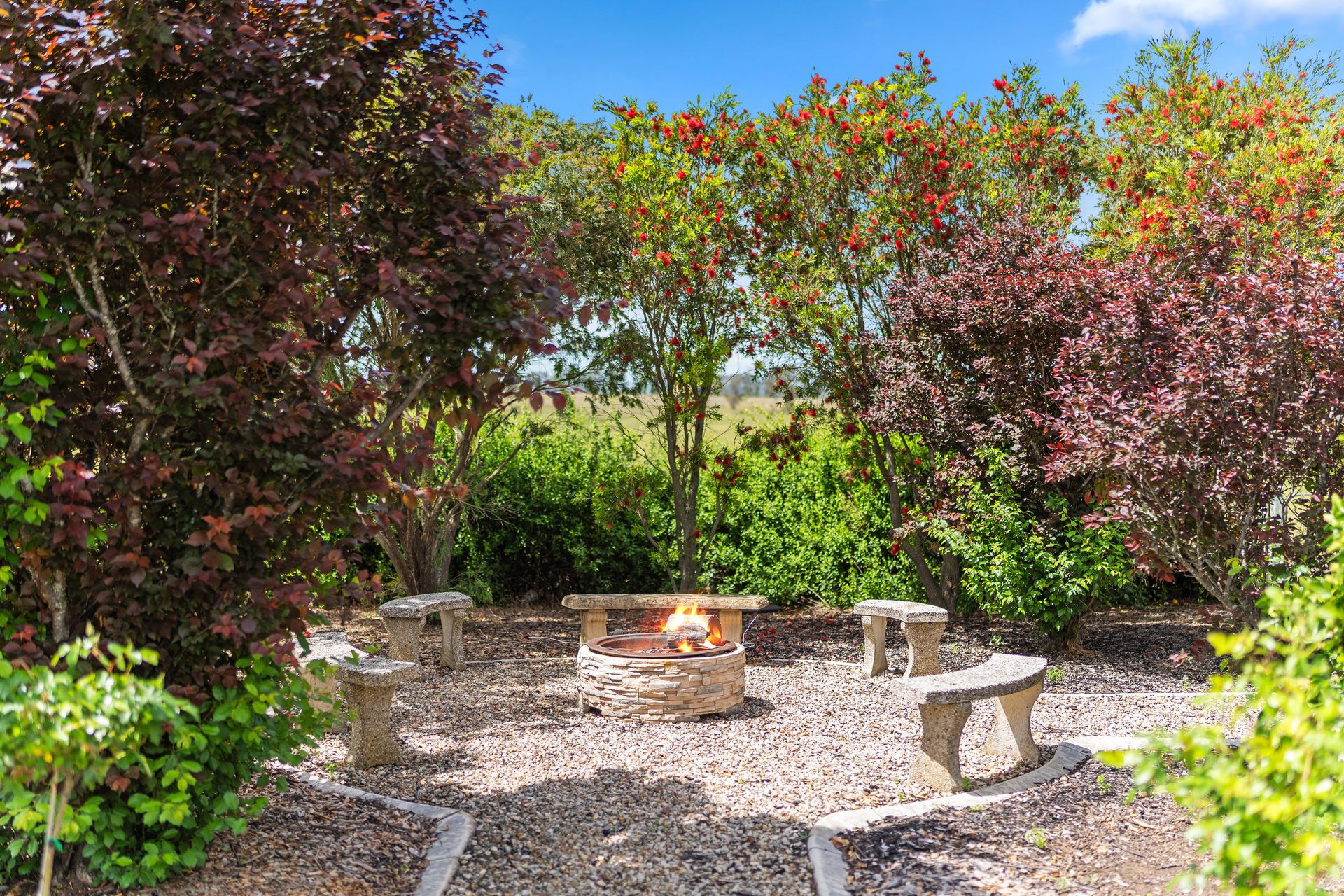 Courtyard at the back with outdoor seating, fire pit and BBQ