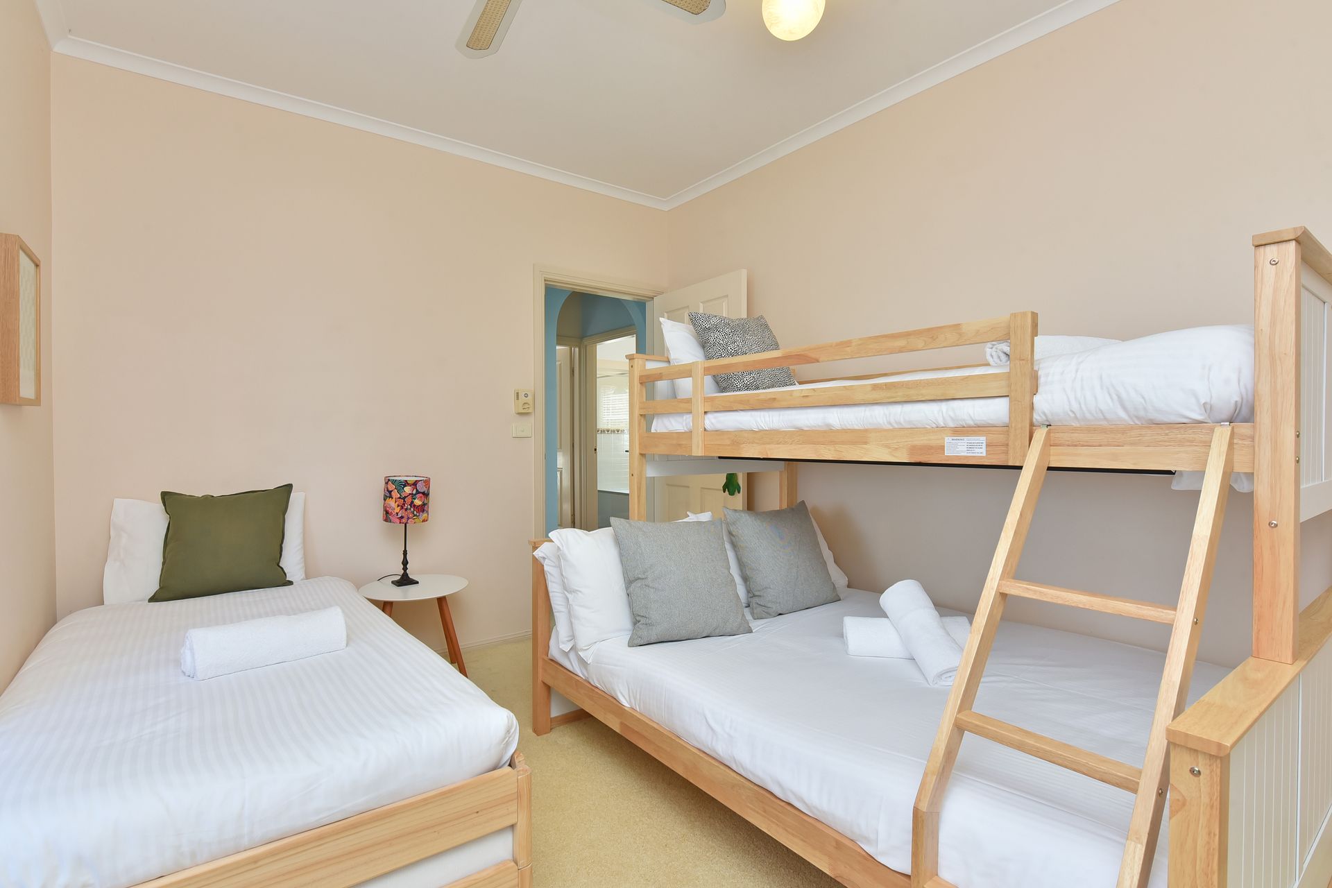 Bedroom 2: Tri Bunk Bed and single bed, Built In Robe, Ceiling Fan