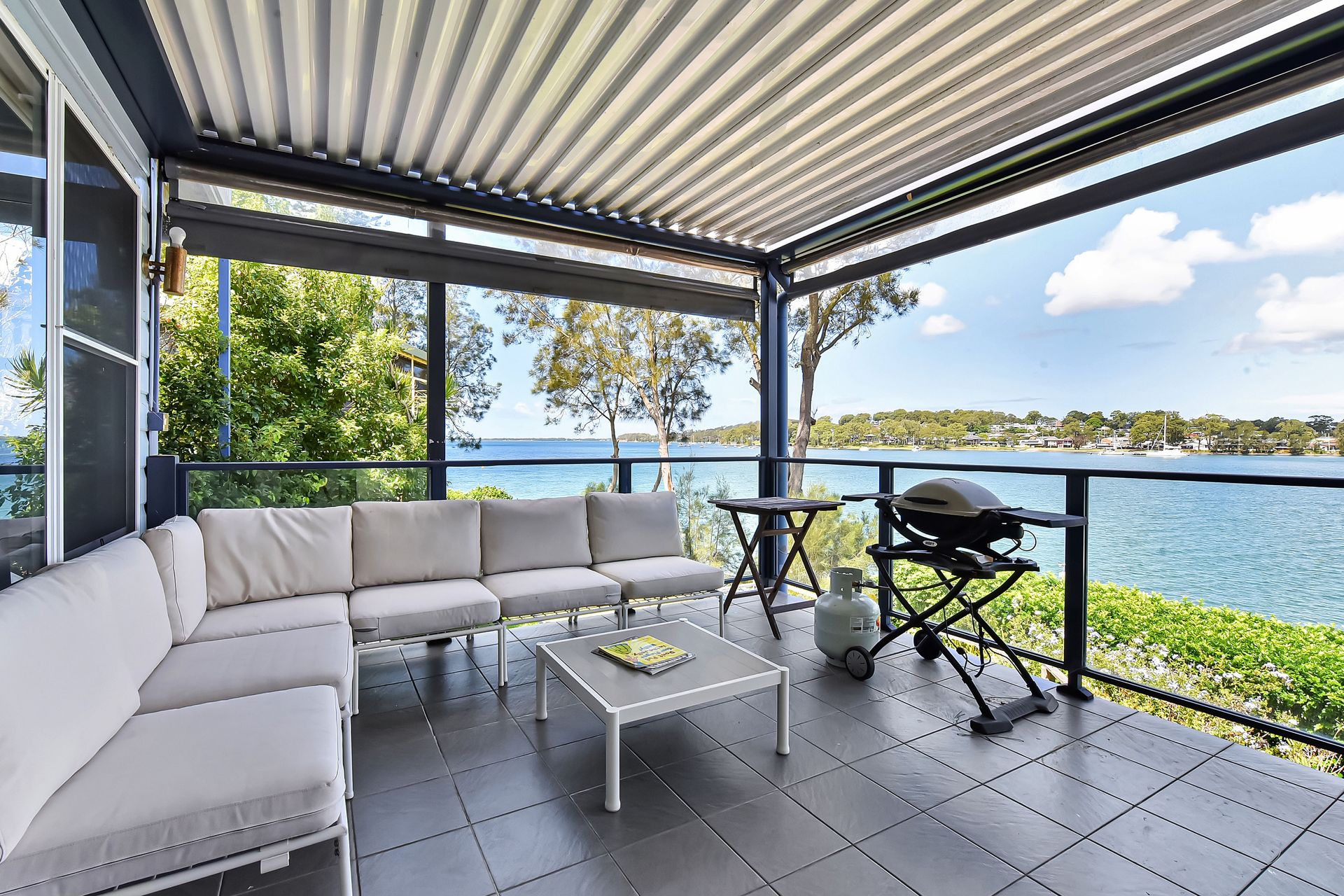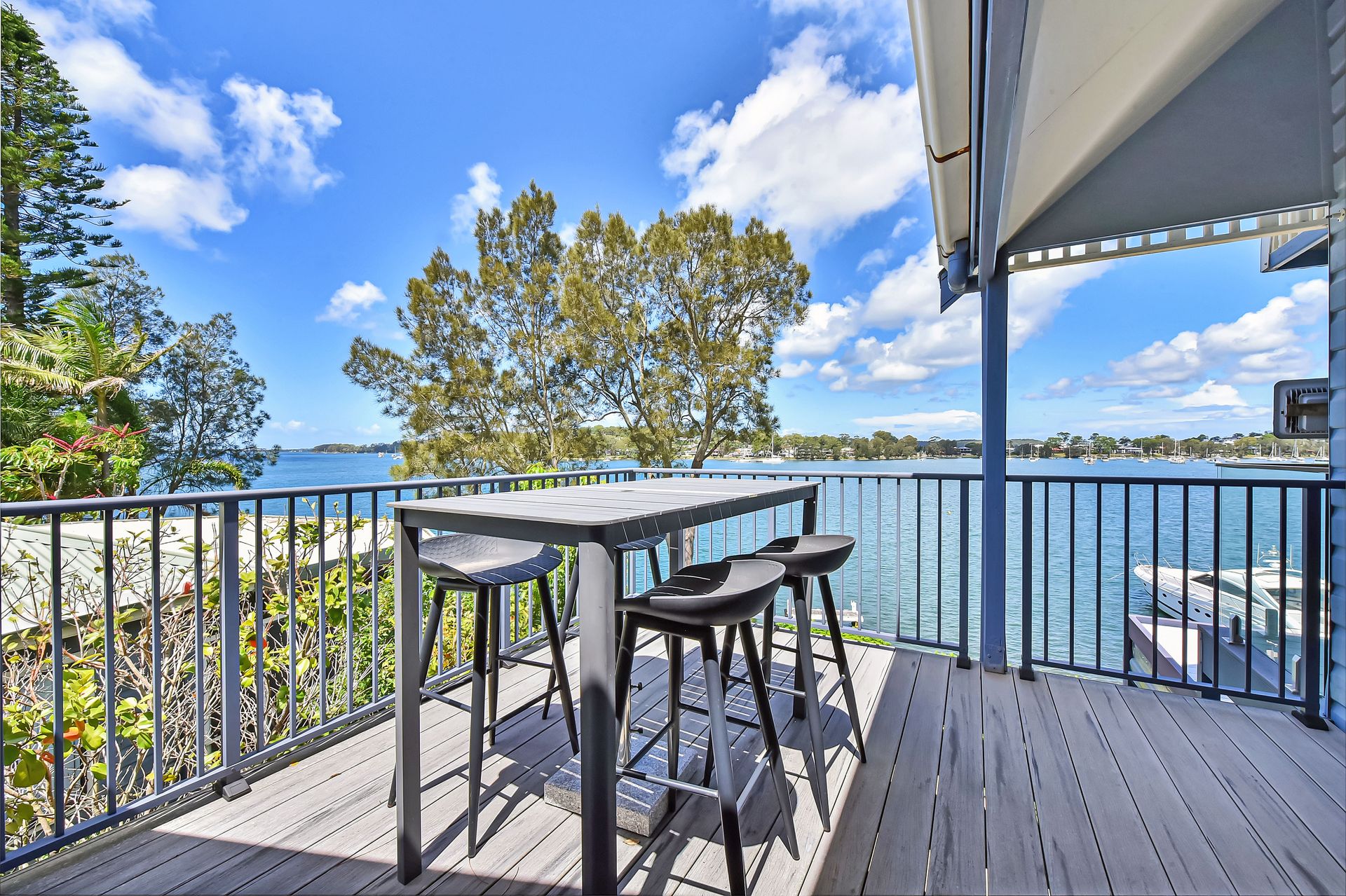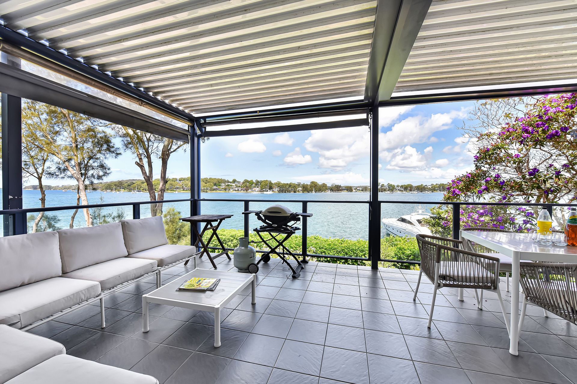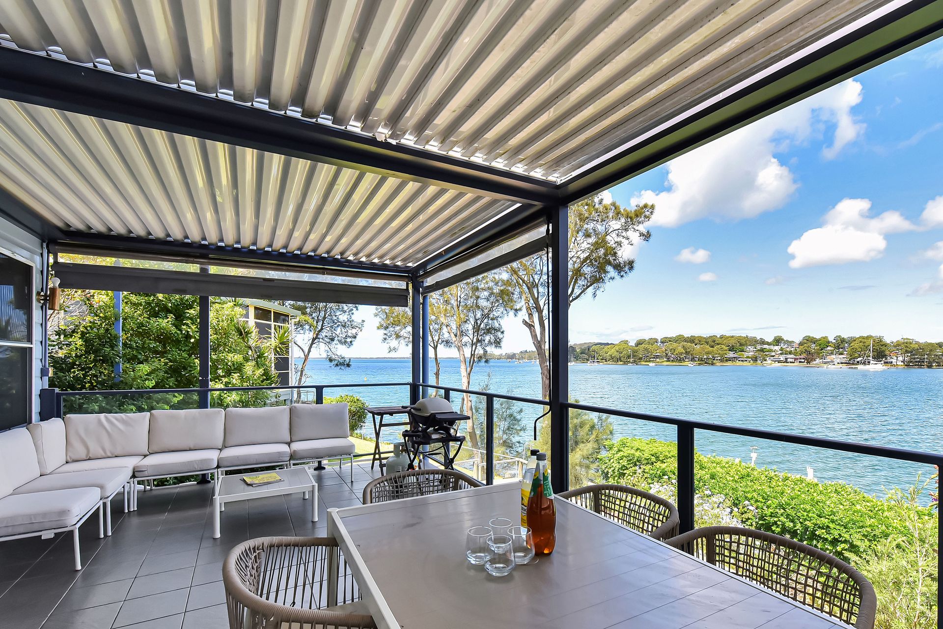 Inside, the home features open-plan living and dining with air-conditioning, flowing seamlessly onto a covered verandah with an Eclipse roof, perfect for indoor-outdoor living. The well equipped kitchen, comfortable lounge with smart TV, and generous bedrooms upstairs provide space to unwind, while multiple balconies and a deck overlook the lake. Outside, enjoy the BBQ area, direct access to a shared jetty at the bottom of the garden and for electric vehicles there is an EV charger in the garage.