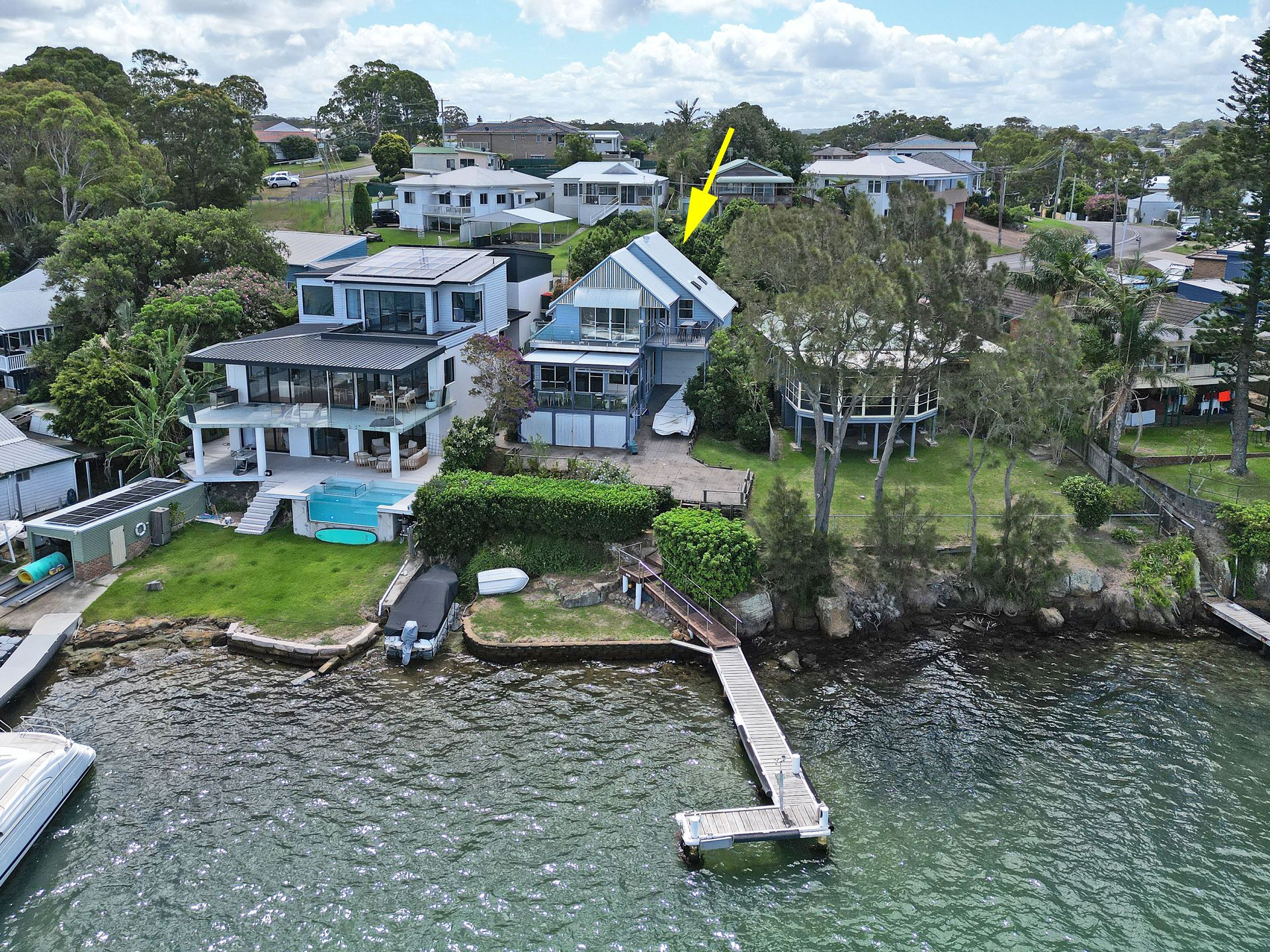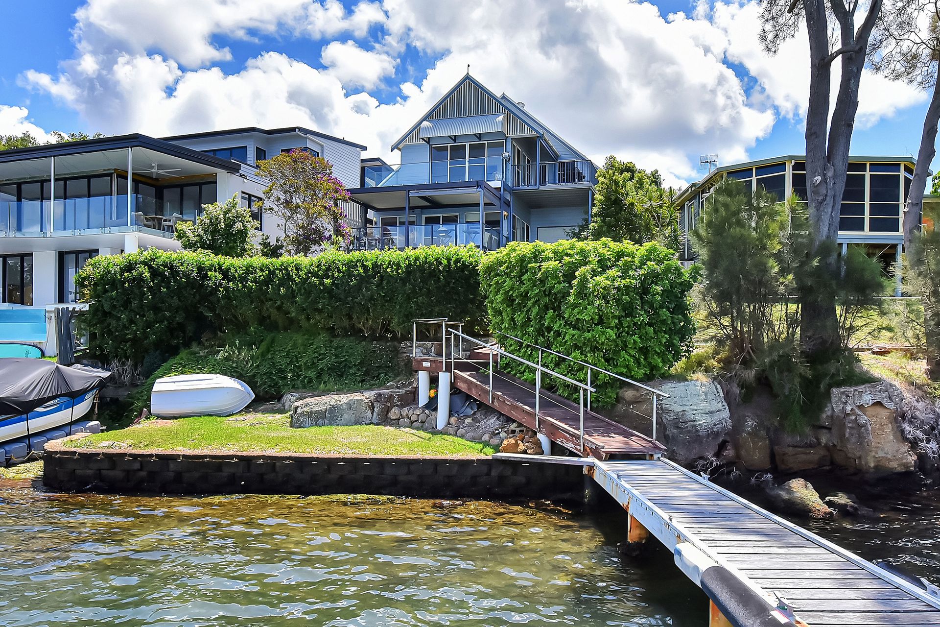 Secure garage parking for 1 vehicle, 2 carport spaces, 6 off-street spaces, plus boat space along jetty.