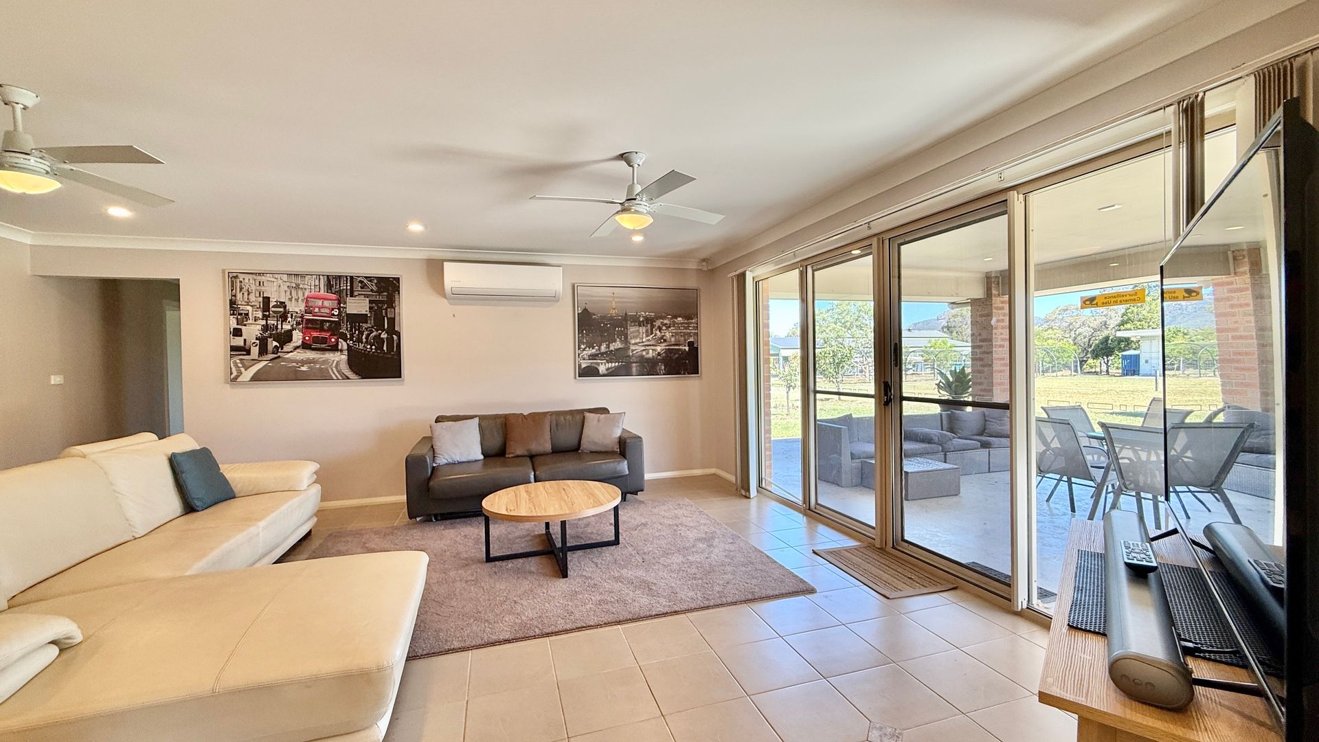 There is one external camera monitoring the front entry only. A noise monitoring device is also installed to help maintain compliance with NSW STRA regulations. Tampering may result in fines.