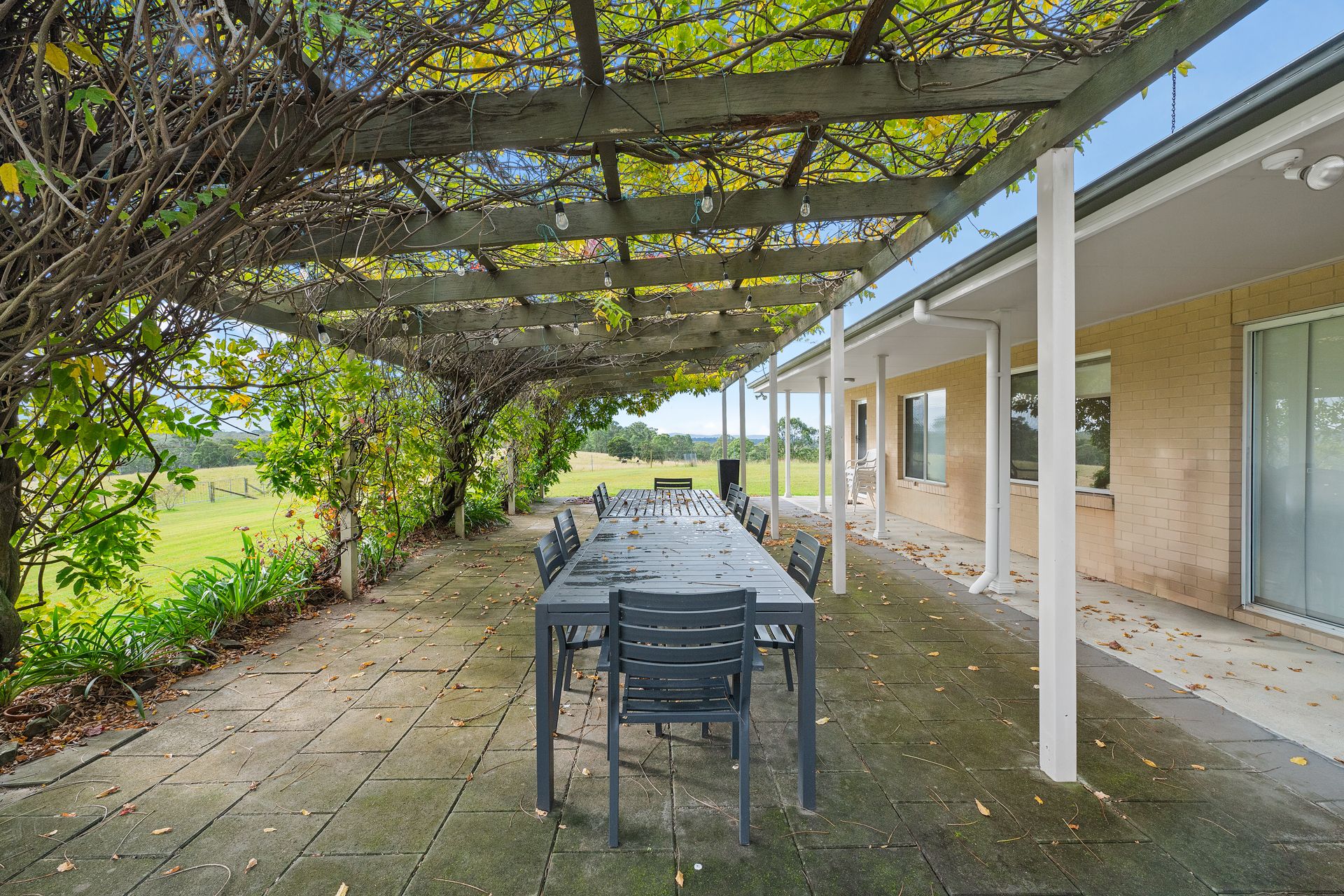 Large outdoor dining table under the verandah