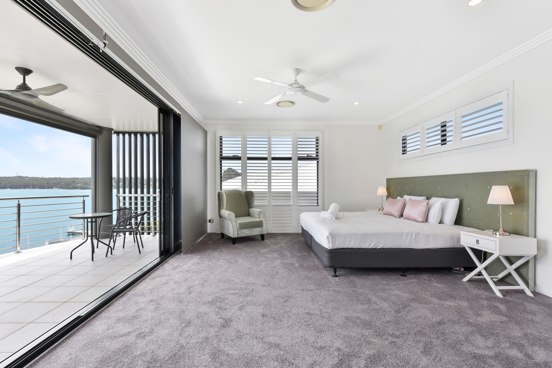 With multiple entertaining areas, this Lake Macquarie accommodation is perfect for gatherings at any time of day or year. The generous bedrooms include an upper-level main suite with a private retreat that can function as a second family room or additional sleeping space.
