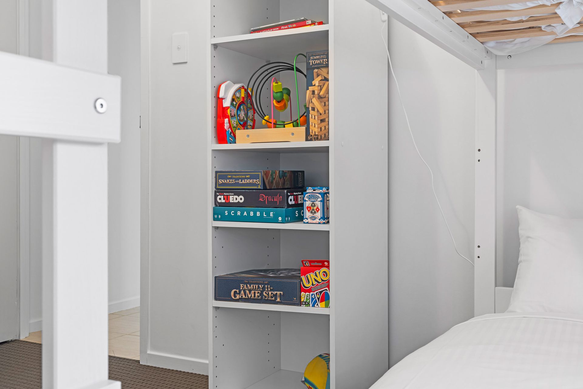 Entertainment features - Table tennis, books, games, toys, fuseball