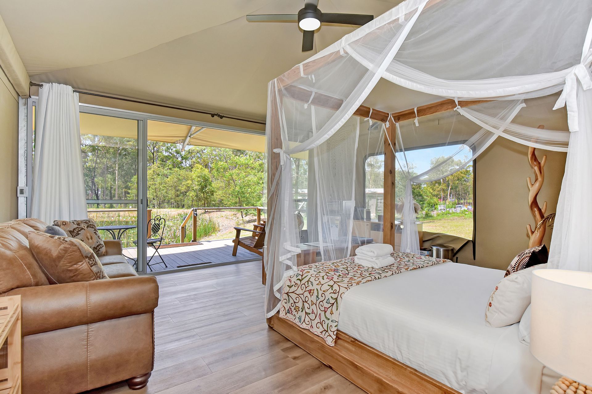 Experience romantic luxury amidst the serene beauty of Australia’s Hunter Valley at our eco-friendly glamping retreat, the perfect escape for two. Nestled in the heart of wine country, our accommodations offer a unique blend of comfort and adventure, all while running off-grid with solar energy. Our glamping tents provide an unforgettable escape into nature's embrace, featuring stunning mountain, rural, and bush views.