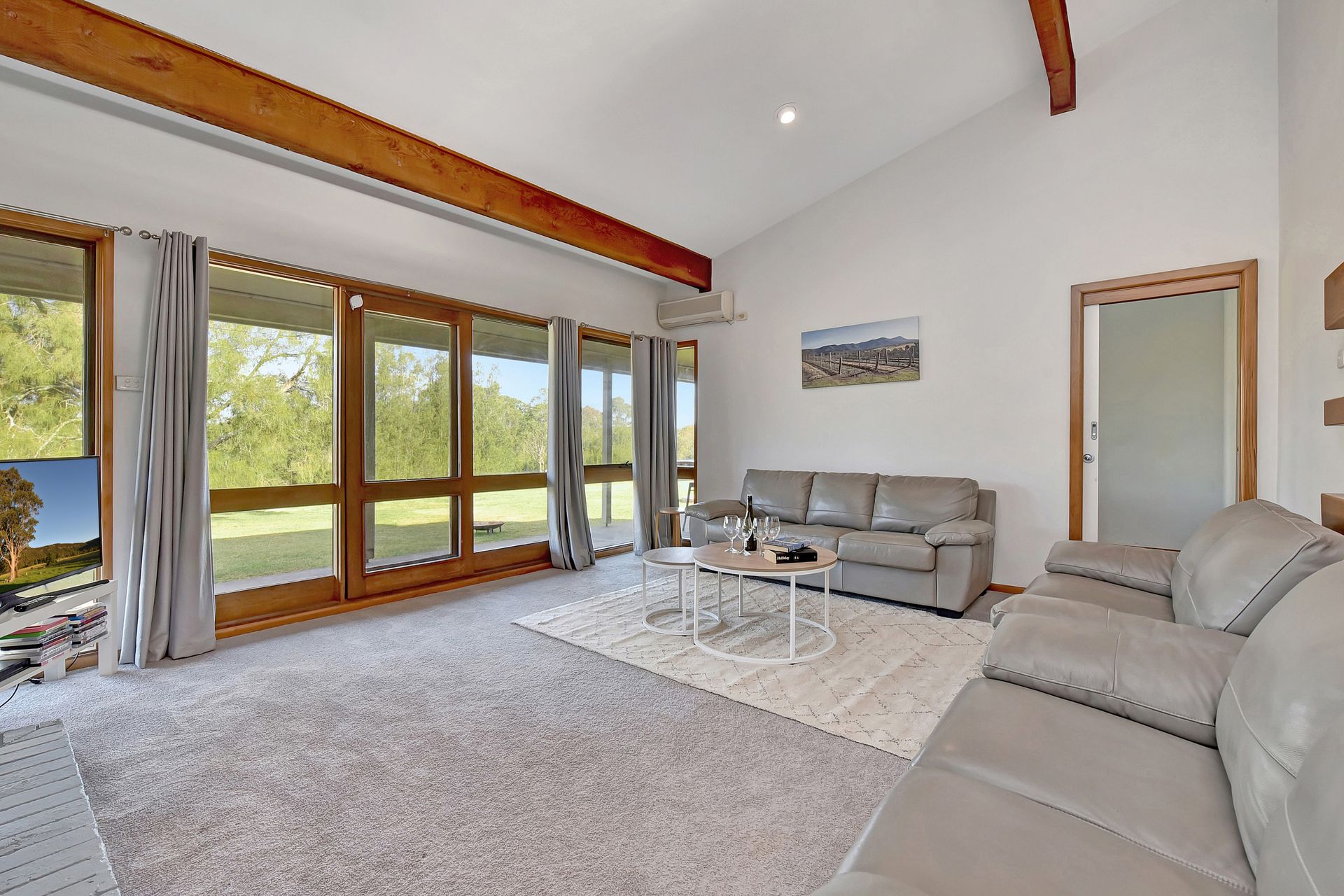 Step onto the expansive front balcony and take in stunning views over a neighboring vineyard, where kangaroos often graze peacefully in their natural surroundings. Or unwind with a glass of local wine on the spacious entertainment deck, soaking up the scenery of the inviting in-ground pool and rolling paddocks beyond.