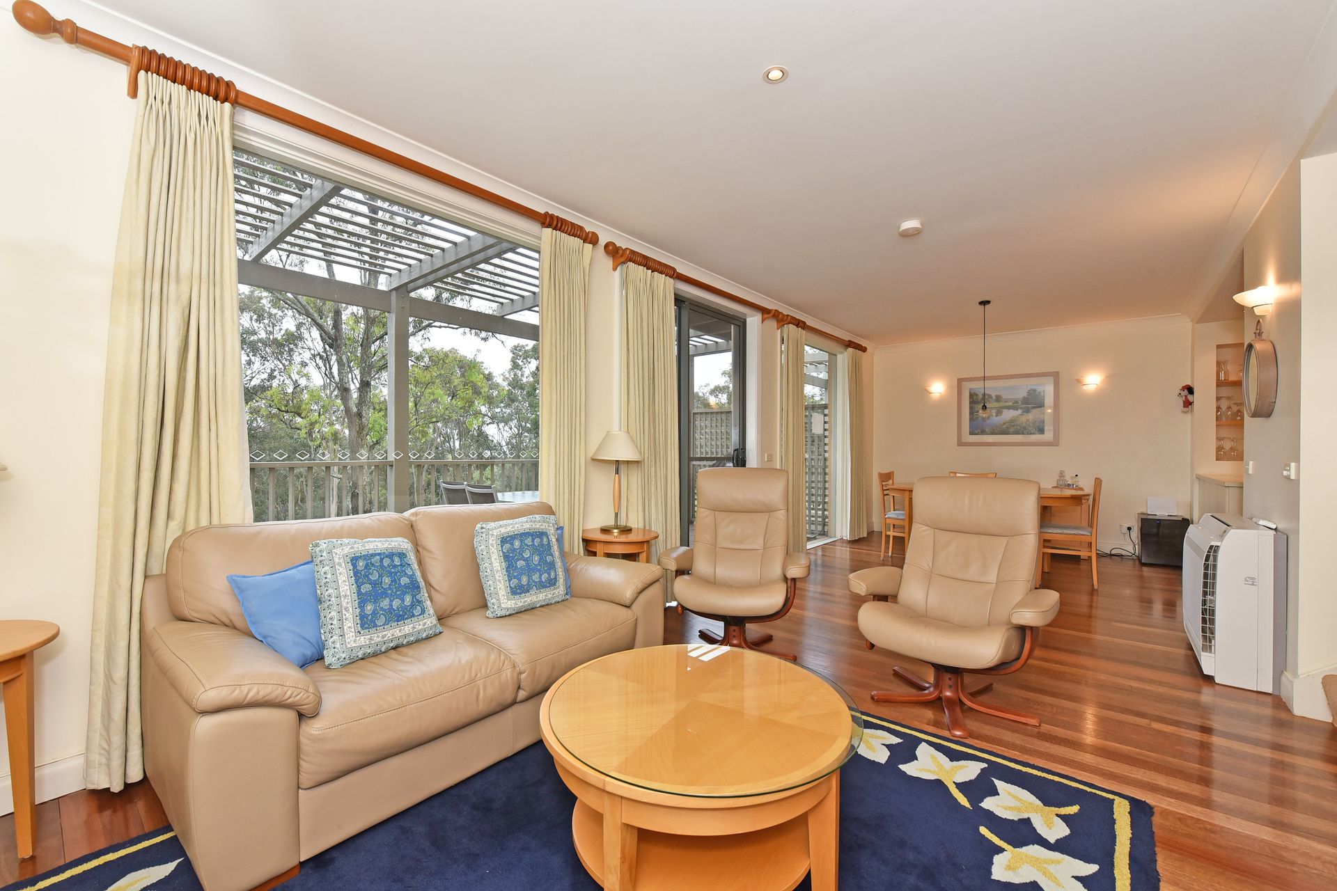 Overlooking the championship golf resort complex, this self-contained luxury retreat villa offers 2 bedrooms with 2x gorgeous ensuite bathrooms, and a 3rd downstairs toilet. It has a warm and cosy living area, air-conditioning and large sunny entertaining balcony with relaxing views.