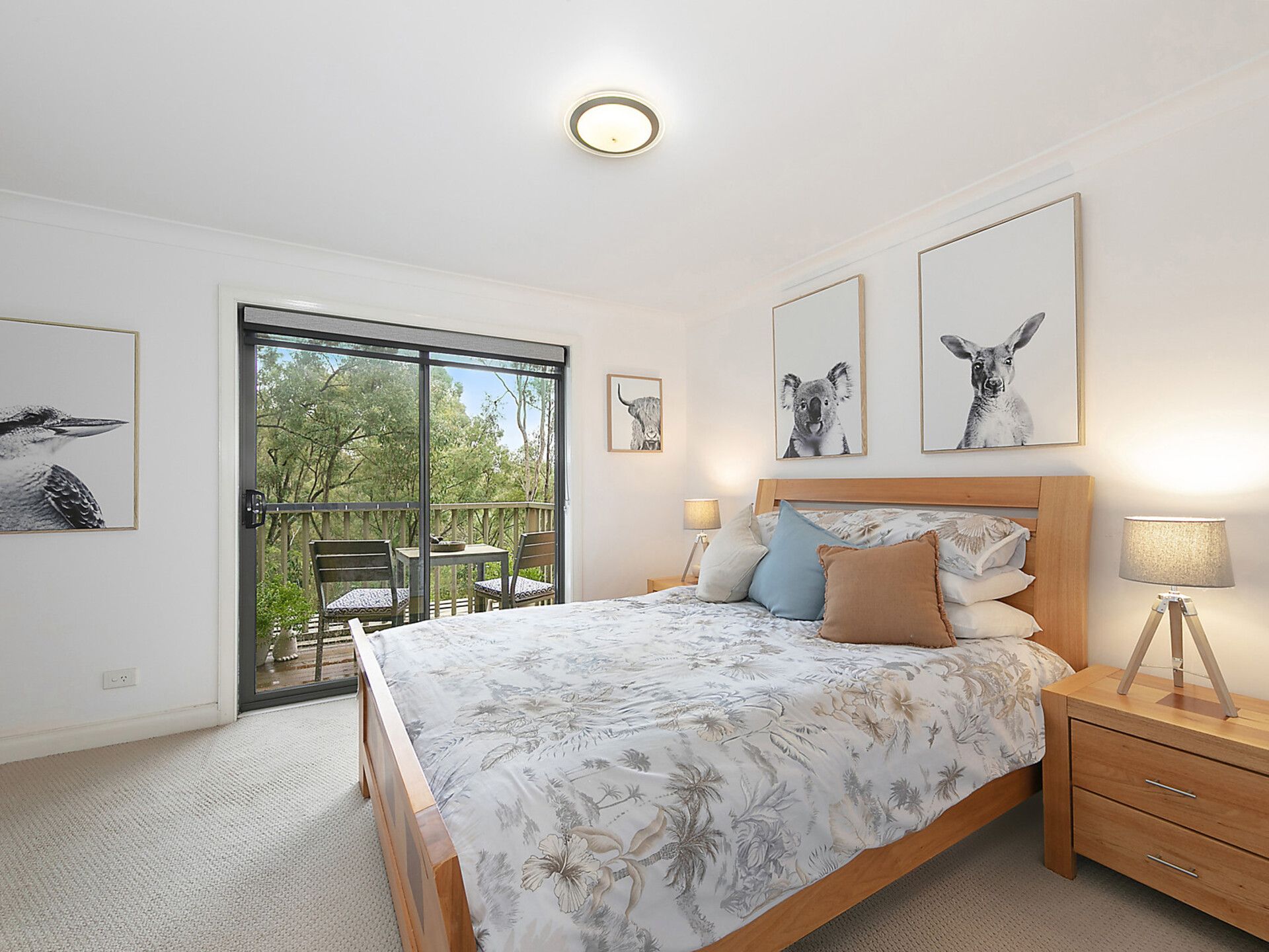 Inside, a superb north-to-rear aspect fills the quiet retreat with gorgeous natural light, while outside there’s a world of leisure and recreation to indulge in. The fully equipped kitchen includes a coffee machine. The open-plan lounge area features a Smart TV and free Wi-Fi for your downtime, and also includes a Euro laundry and powder room downstairs. A delightful veranda overlooks bushland vistas and the soothing melodies of native birds. Outside, you can make use of the BBQ and take a dip in the resort’s shared swimming pool. Additional features include a gas fireplace, hardwood floors, and double roller blinds.