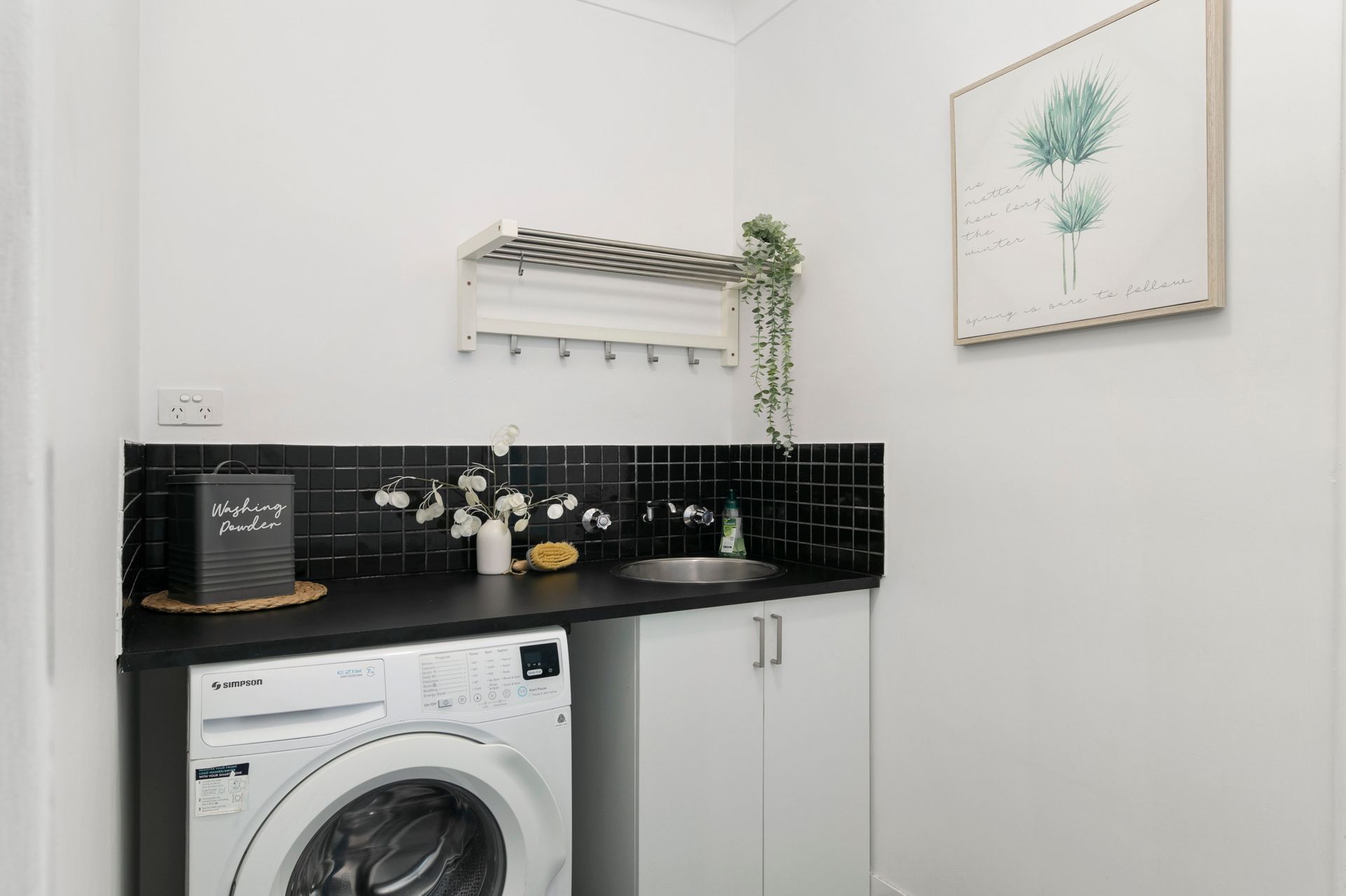 - Internal laundry with washing machine, dryer, iron & ironing board
