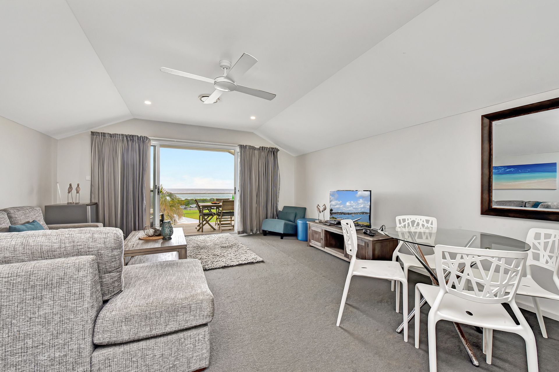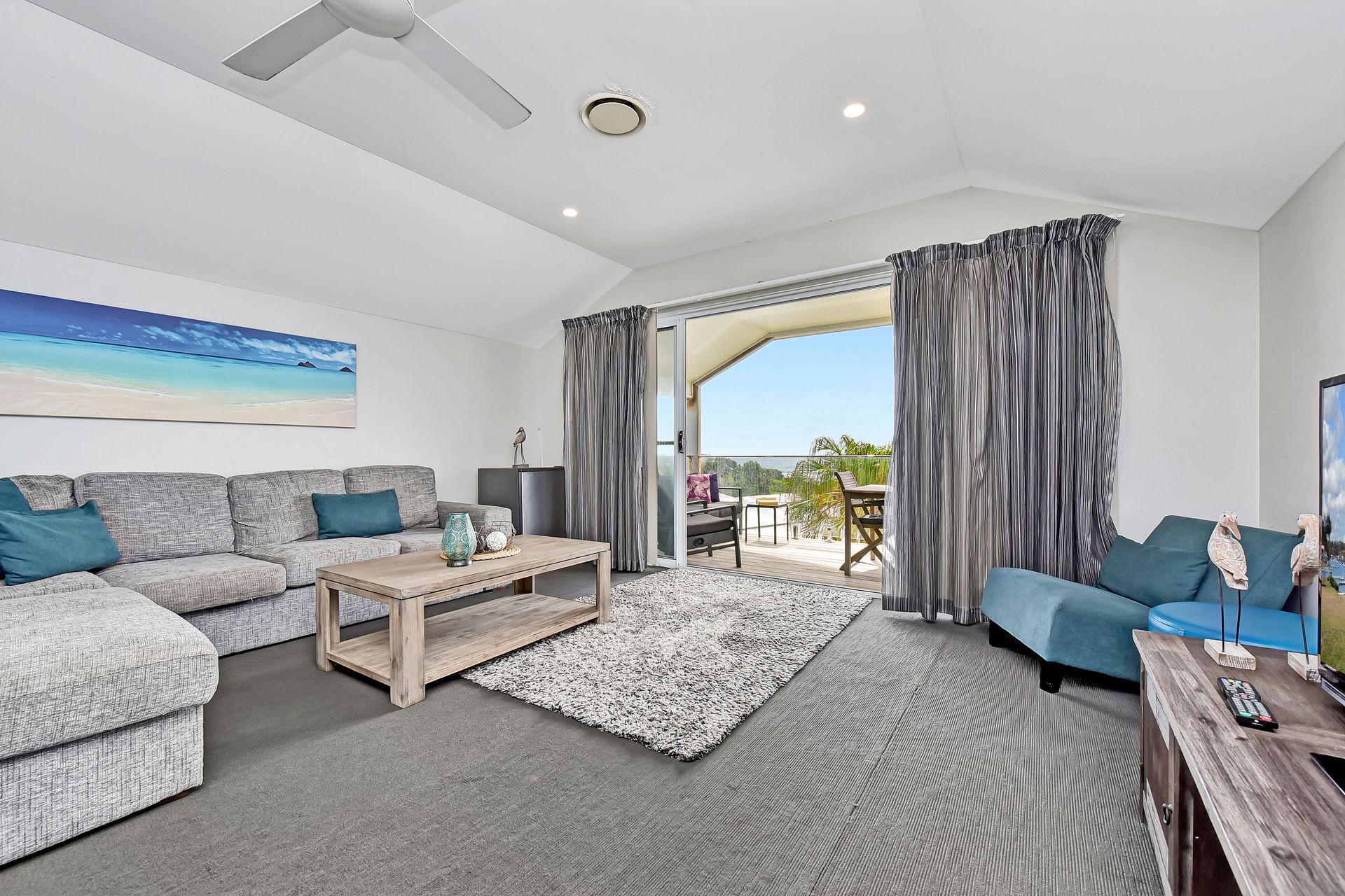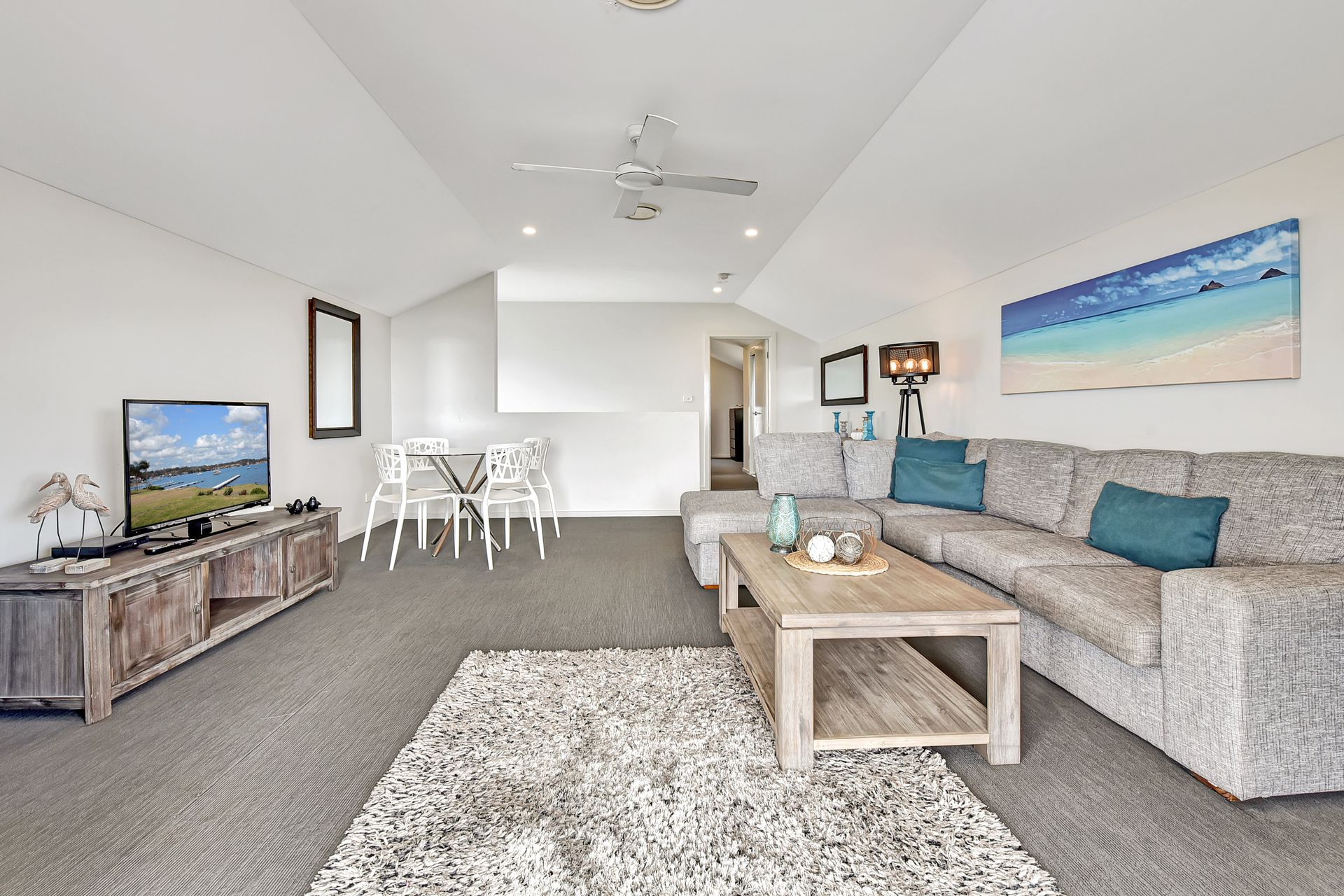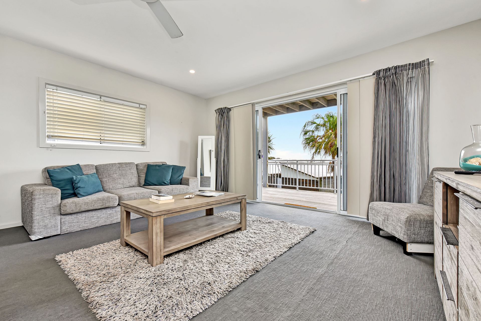 With stunning ocean views, Caves Beach Villa 38 - "Whale Tales" - beautifully blends indoor and outdoor living. Inside, you'll discover two generous living areas designed for maximum relaxation, a well-appointed kitchen and 2 large bedrooms, each with an ensuite, and the upstairs bathroom featuring a deep bath tub for added luxury.