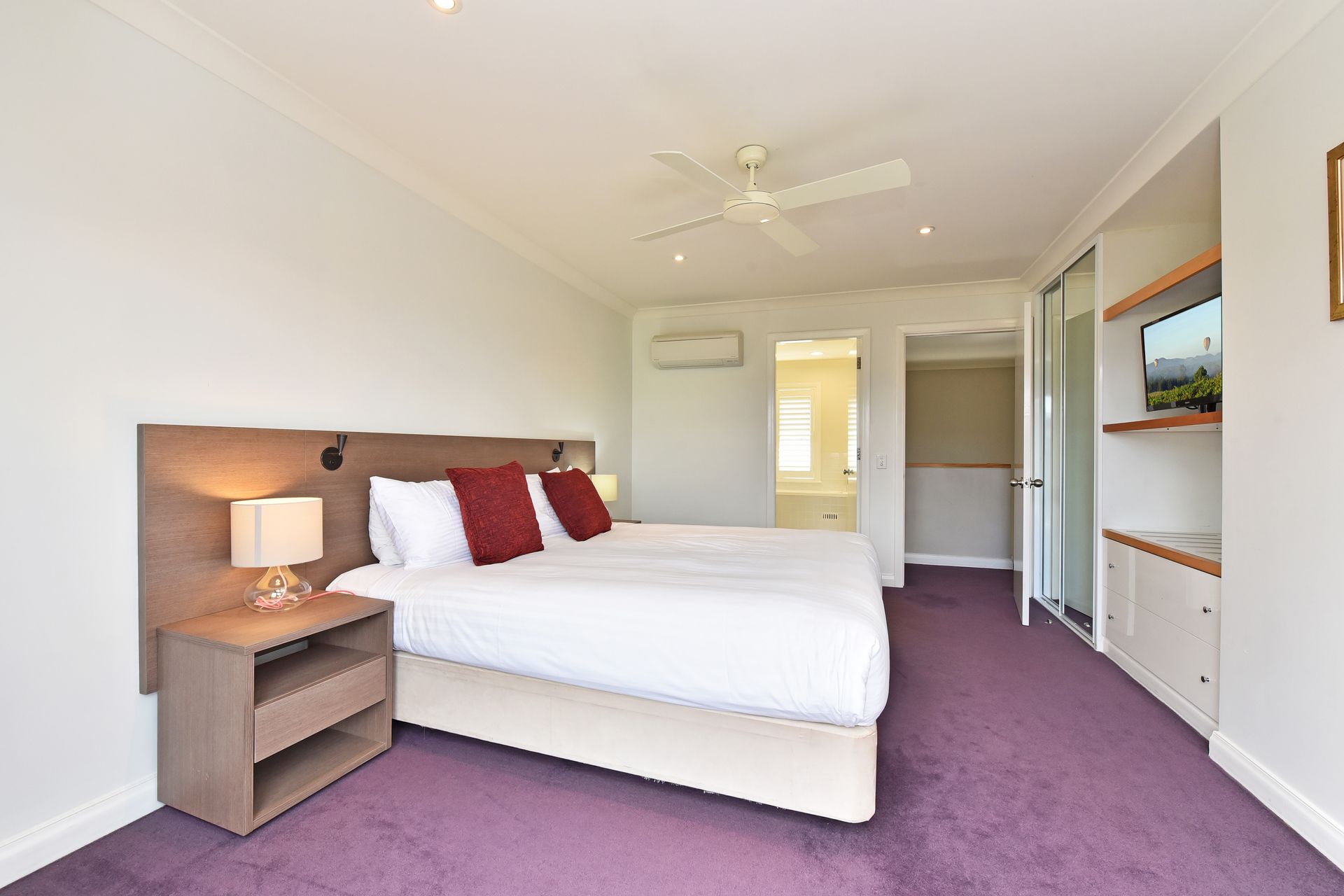 Overlooking the championship golf resort complex, our self-contained luxury retreat apartments offer 3 bedrooms with 2 full bathrooms plus downstairs toilet/powder room. Offering sunny & spacious living areas, air-conditioning plus a large sunny entertaining balcony and relaxing views over the golf course.